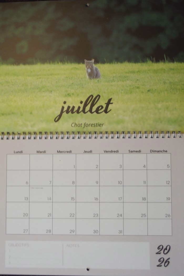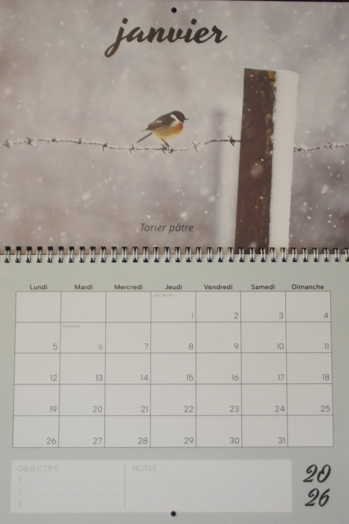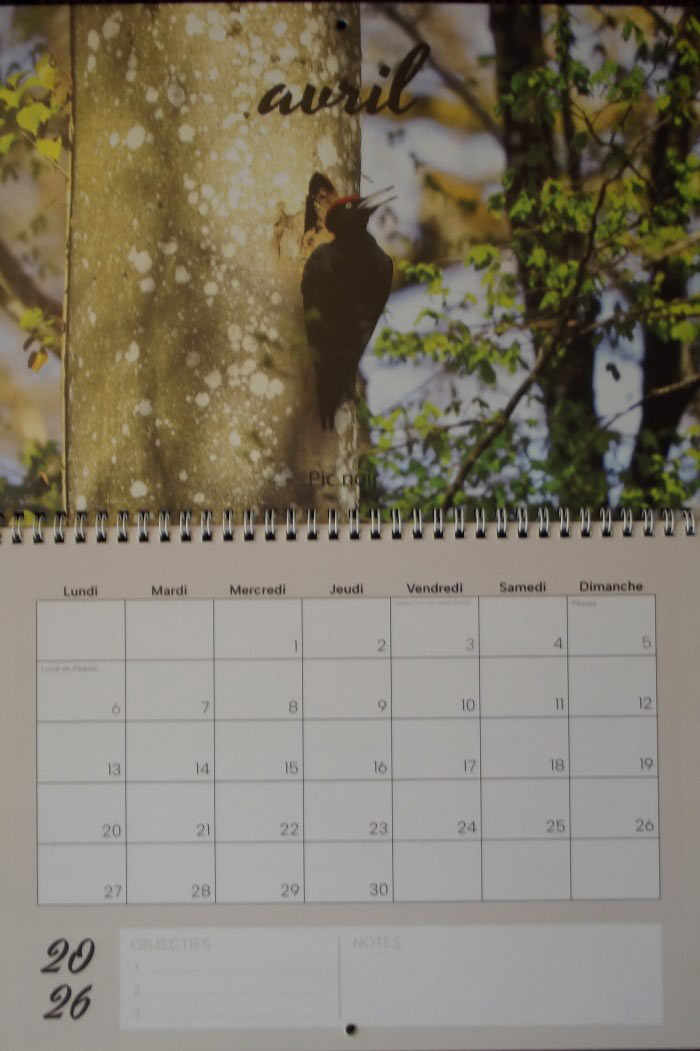 Se pose ensuite la question du choix des photos. Il s’agit alors de garder les plus belles. Il s’agit d’un exercice difficile. Se combine ma subjectivité et les goûts de mes clients. Certains aimeraient avoir plus d’oiseaux alors que d’autres voudraient plus de mammifères. Je fais donc un compromis entre les deux afin d’être certain de faire plaisir à tout le monde. Cette année j’ai même intégré une photo proxi à savoir un papillon sur l’emblème de la Lorraine, un cardon.